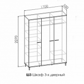 Ф-ка Мирлачева серия "COLLEGE GREY" 2026 Шкаф 3-х створчатый под гладильную доску Ш3.G