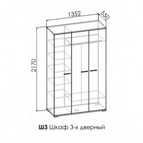 Ф-ка Мирлачева комната "MONO" 2025. МОНСТЕРА Шкаф 3-х дверный Ш3