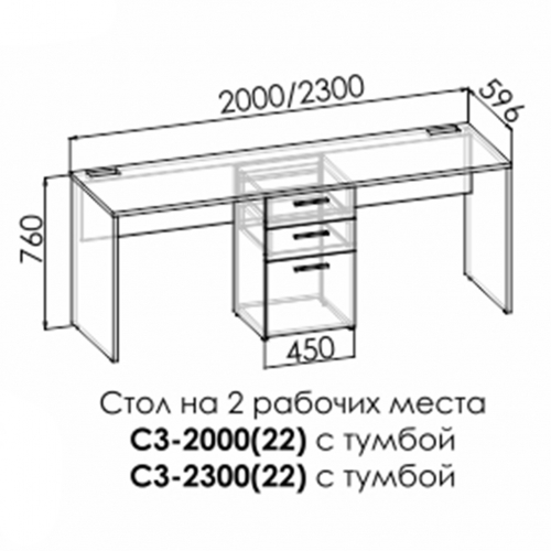 Ф-ка Мирлачева комната "MONO" 2025. СЕРО-ГОЛУБОЙ Стол на 2 рабочих места С3-2000/2300