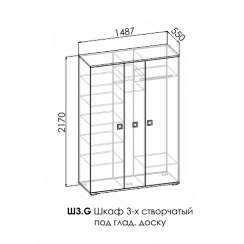 Ф-ка Мирлачева комната "VECTRA" 2025 Шкаф 3-х створчатый под глад.доску Ш3.G