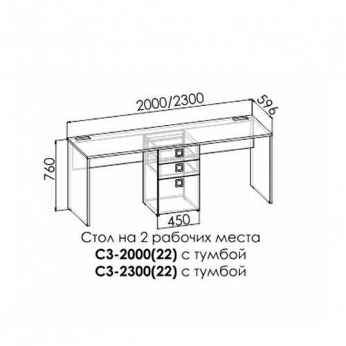 Ф-ка Мирлачева комната "VECTRA" 2025 Стол на 2 рабочих места С3-2000/2300