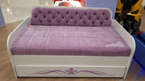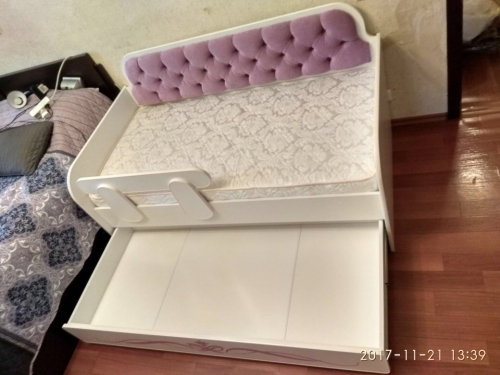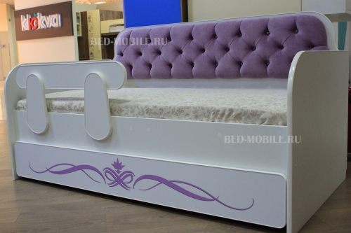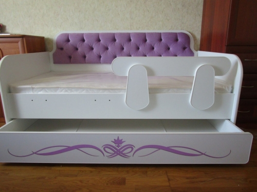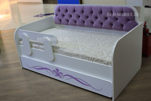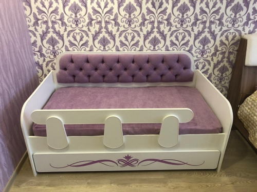Кровать Классик Сирень – это не только удобное спальное место для самого маленького обитателя вашего дома. Это многофункциональная мебель, которая поможет поддерживать порядок в детской комнате. Модель оборудована вместительным ящиком, куда можно сложить игрушки, книжки, одежду или постельное бельё. Приобретая такую тахту, вы получаете одновременно и комфортную кровать, и шкаф для детской. Благодаря белоснежному цвету корпуса эта мебель смотрится легко, не «перегружая» обстановку. При этом вам не нужно беспокоиться о маркости белого цвета: поверхность тахты ламинирована, поэтому на ней не остаётся трудновыводимых загрязнений и следов пальцев.