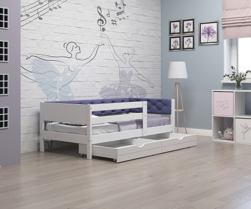 Кровать Золушка комфорт с мягкой спинкой, цвет сиреневый (массив березы)