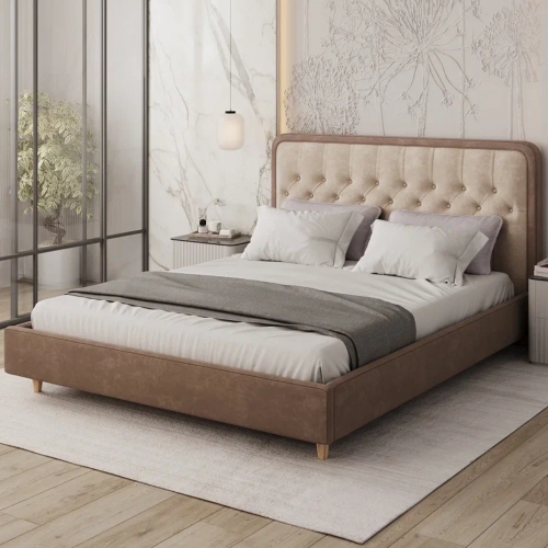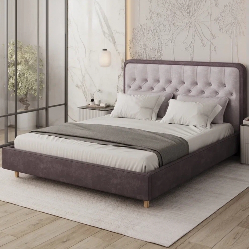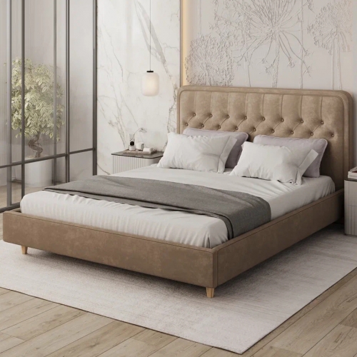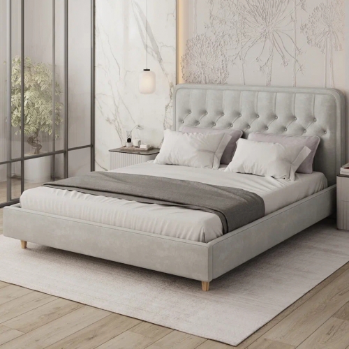 Модель отличается мягкими формами и изысканным изголовьем с каретной стяжкой, которое придаёт кровати объём и эффектный внешний вид. Благодаря обивке из ткани Teddy, изделие выглядит уютно и стильно, а прикосновение к ней дарит ощущение тепла и мягкости.