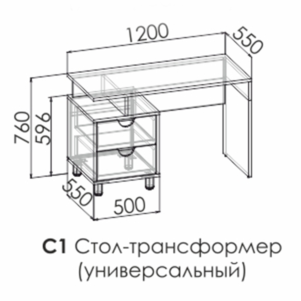 Два положения сборки стола по высоте.