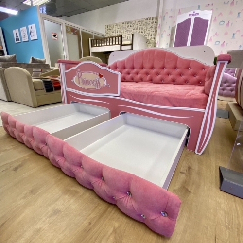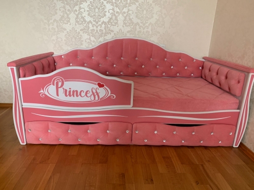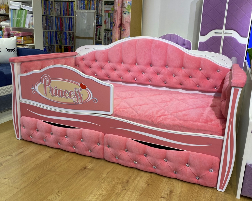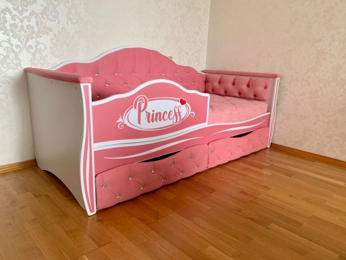 Кровать "Иллюзия" со стразами на спинке в ткани Velvet lux 36 с 2 ящиками с фасадами со стразами, бортиком Princess, мягкими накладками, наматрасником декоративным стеганым .