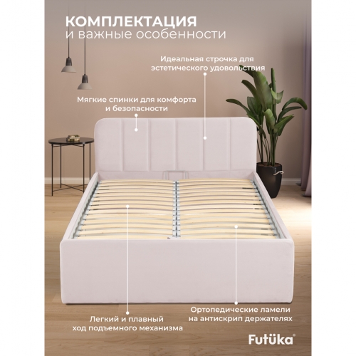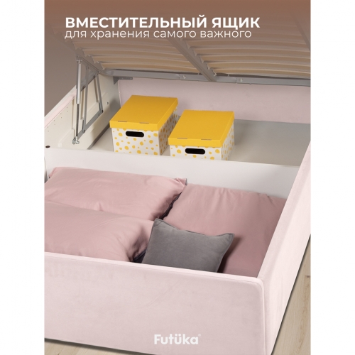 Кровать имеет лучшие расцветки, которые создадут приятную атмосферу в комнате и сделают ее более уютной. Она также оснащена подъемным механизмом и большой нищей для хранения спальных принадлежностей и вещей.