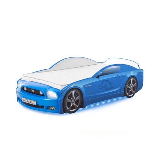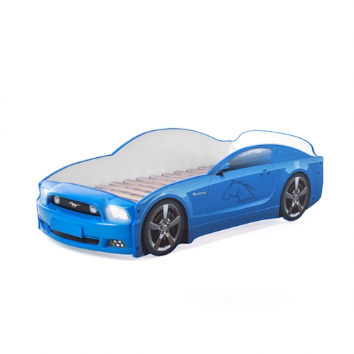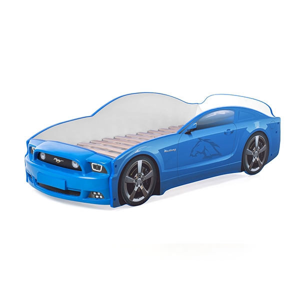 Объемный, детализированный бампер из формованного пластика имитирует дизайн автомобиля марки Mustang. Каркас кроватки сделан из ЛДСП класса Е-0,5, одобренной для производства детской мебели с низким уровнем эмиссии формальдегида. Важный момент – торцы даже скрытых деталей отделаны кромкой ПВХ. Декоративные наклейки на корпусе изделия защищены от истирания и выгорания матовой ламинацией.