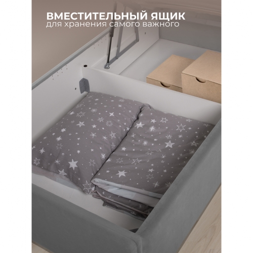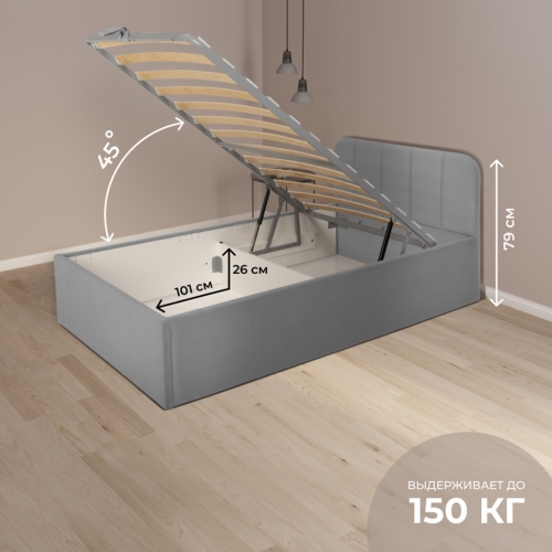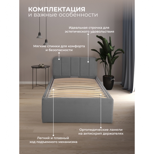 Кровать изготовлена из ЛДСП класса эмиссии 0,5. Ортопедическое основание состоит из металлического профиля с защитным покрытием. Обивка из износостойкой ткани мягкая на ощупь и легко чистится. Благодаря своему стильному дизайну кровать впишется в любой интерьер.