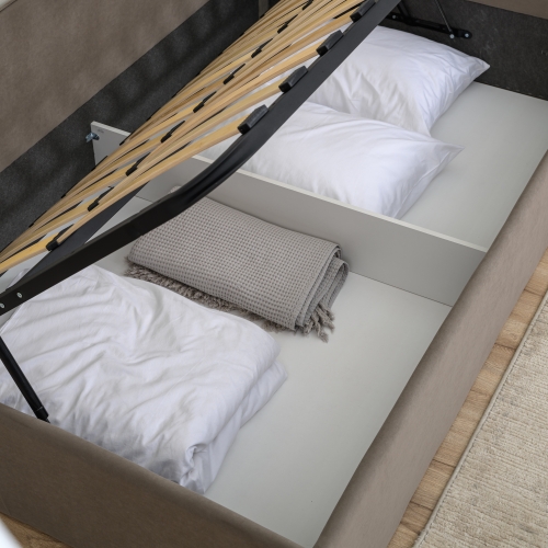 Кровать Oliver оснащена вместительными ящиками, которые идеально подойдут для хранения постельного белья, одежды и других вещей, что особенно актуально для компактных пространств. Удобный подъемный механизм гарантирует легкий доступ к ящикам, делая использование кровати безопасным и простым.