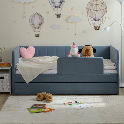 Кровать Полли оснащена вместительным выкатным ящиком, который поможет организовать пространство и удобно хранить игрушки или постельное белье. Изготовленная из качественного микровелюра, она не только привлекает внимание своим элегантным дизайном, но и гарантирует комфортный сон.