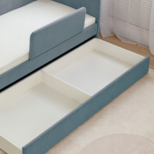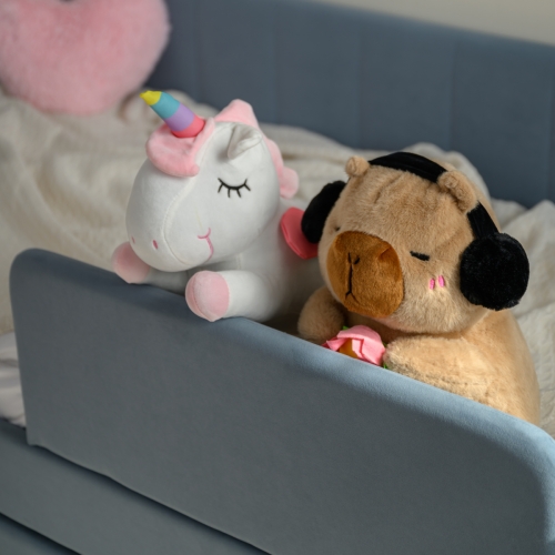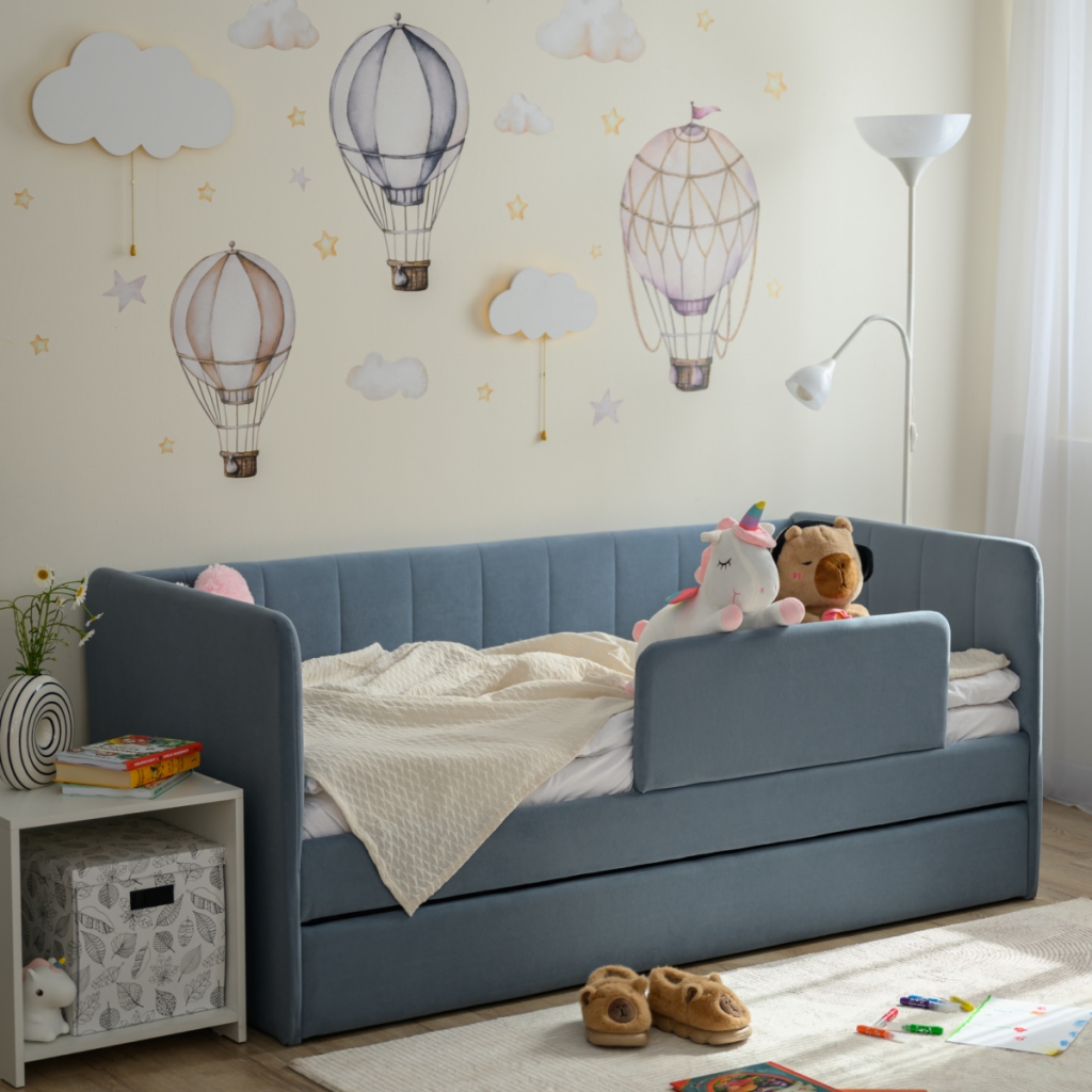 Кровать Полли оснащена вместительным выкатным ящиком, который поможет организовать пространство и удобно хранить игрушки или постельное белье. Изготовленная из качественного микровелюра, она не только привлекает внимание своим элегантным дизайном, но и гарантирует комфортный сон.