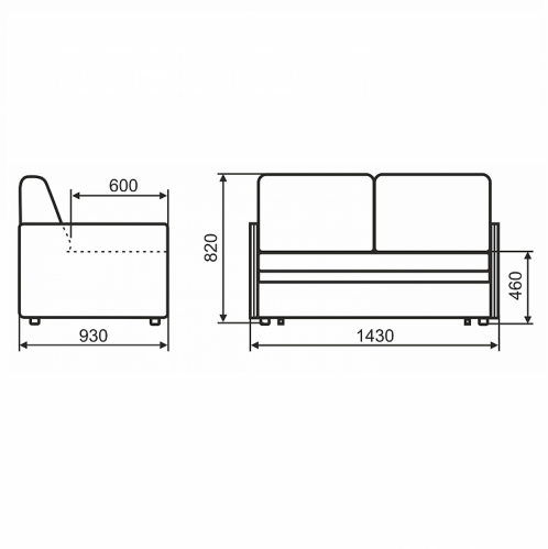 Размеры дивана: Д143хГ930хВ82 см.