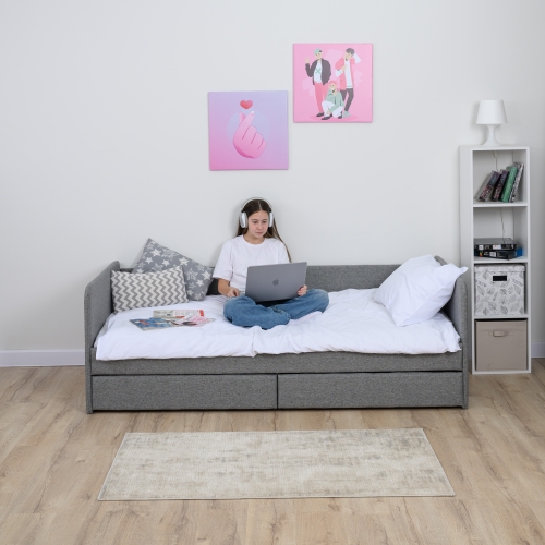 • Функциональные ящики: Вместительные ящики для хранения помогут организовать пространство и поддерживать порядок в комнате, что особенно актуально для небольших помещений.