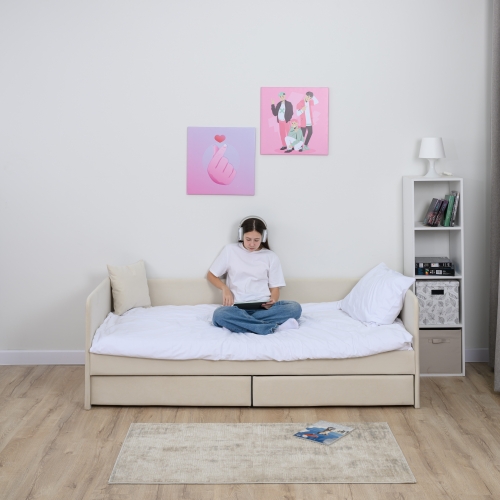 • Функциональные ящики: Вместительные ящики для хранения помогут организовать пространство и поддерживать порядок в комнате, что особенно актуально для небольших помещений.